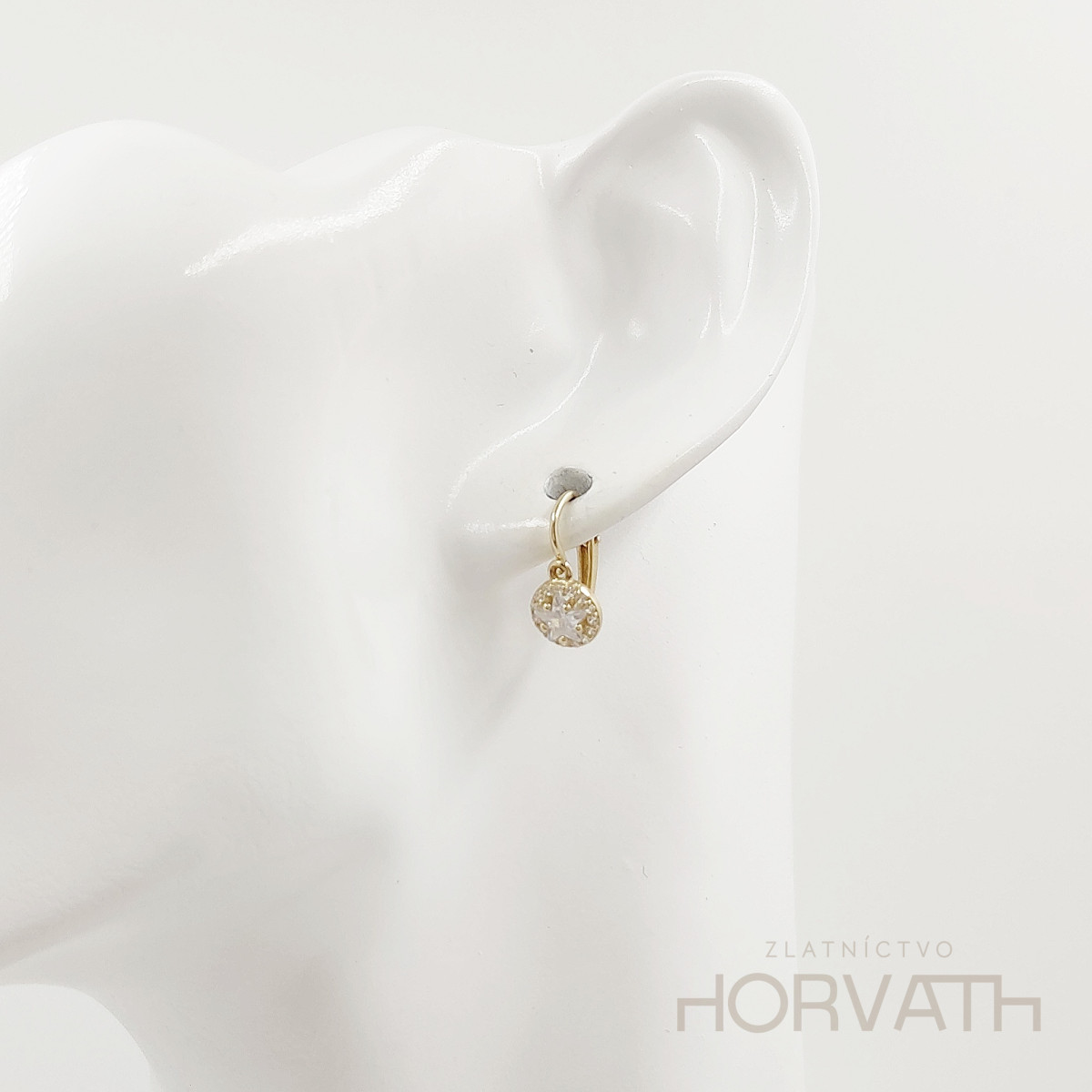 Zlaté náušnice zpredu zapínacie, vyrobené zo 14 karátového zlata 585/1000. Vhodné pre novorodencov.