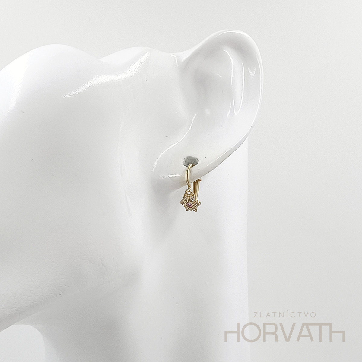 Zlaté náušnice zpredu zapínacie, vyrobené zo 14 karátového zlata 585/1000. Vhodné pre novorodencov.