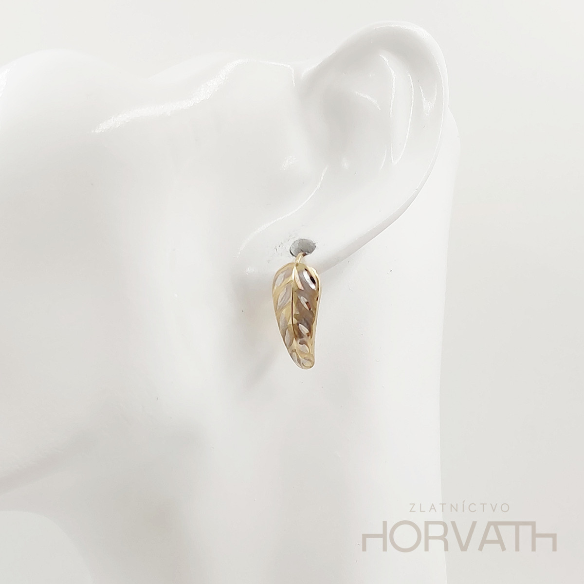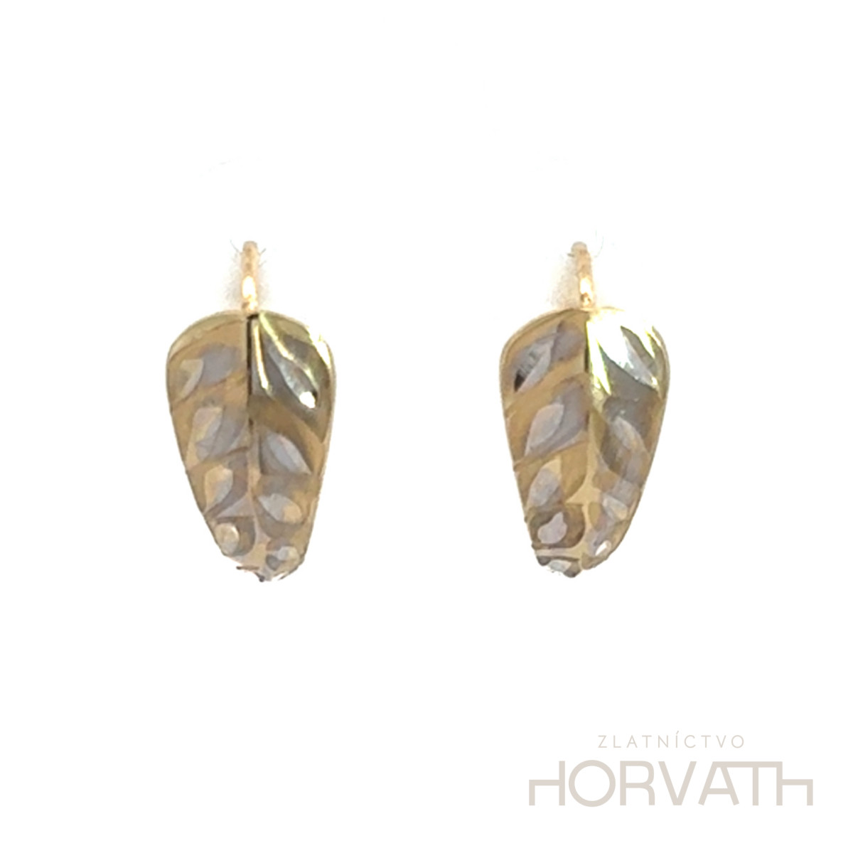 Zlaté náušnice zdobené gravírovaním, sú na klasické zapínanie vyrobené zo 14 karátového zlata 585/1000.