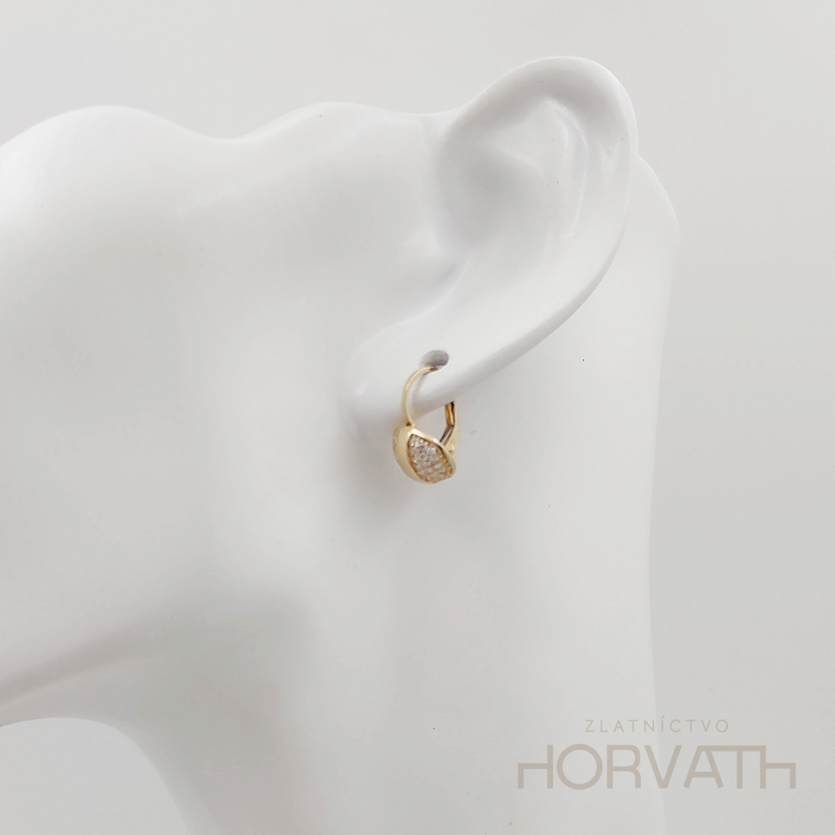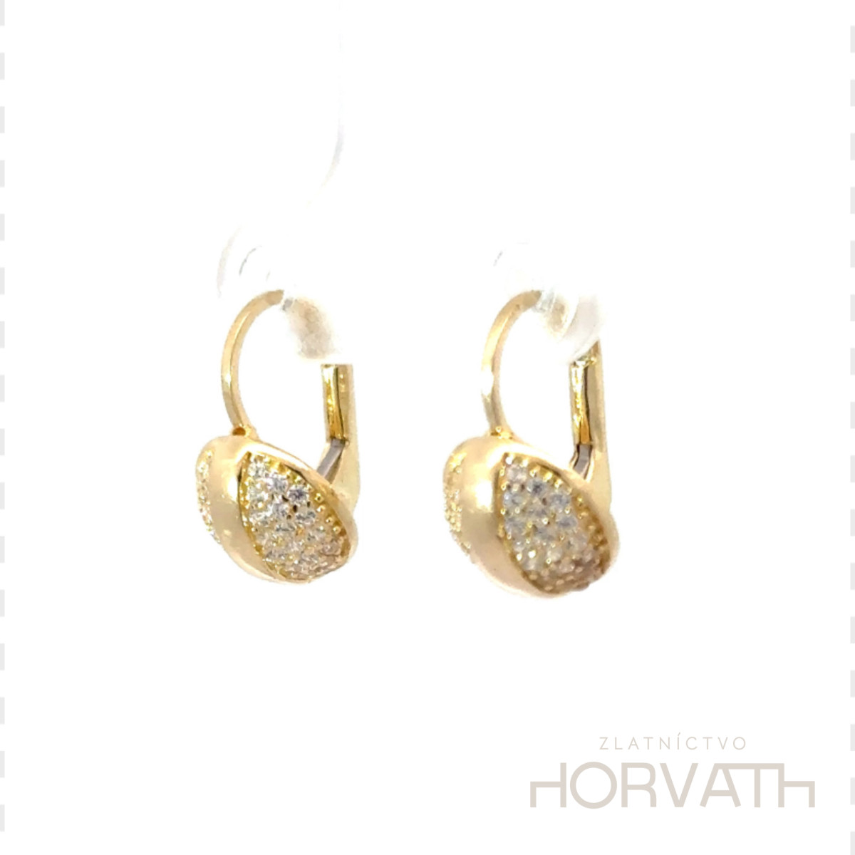 Zlaté náušnice zdobené zirkónmi sú na klasické zapínanie, vyrobené zo 14 karátového zlata 585/1000.