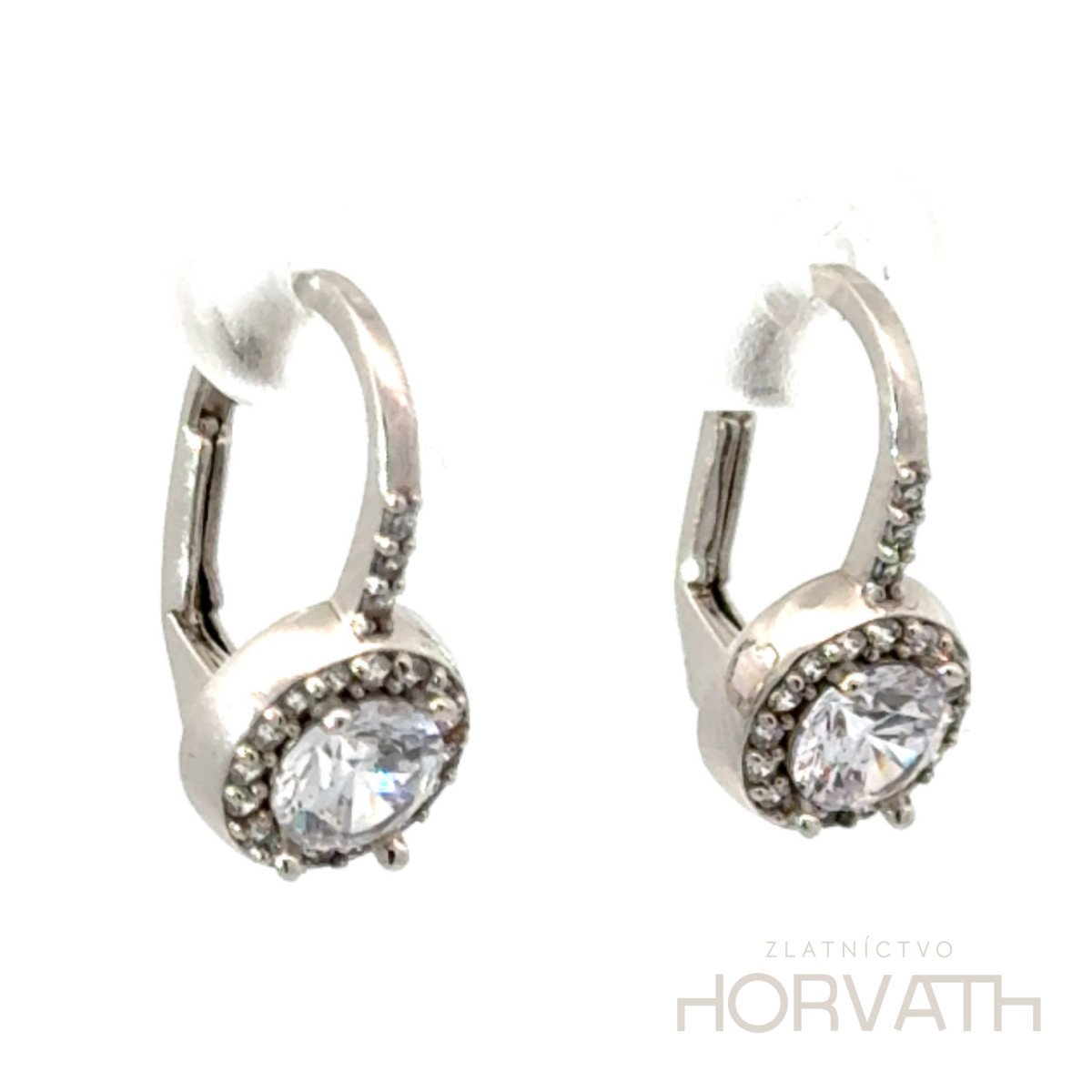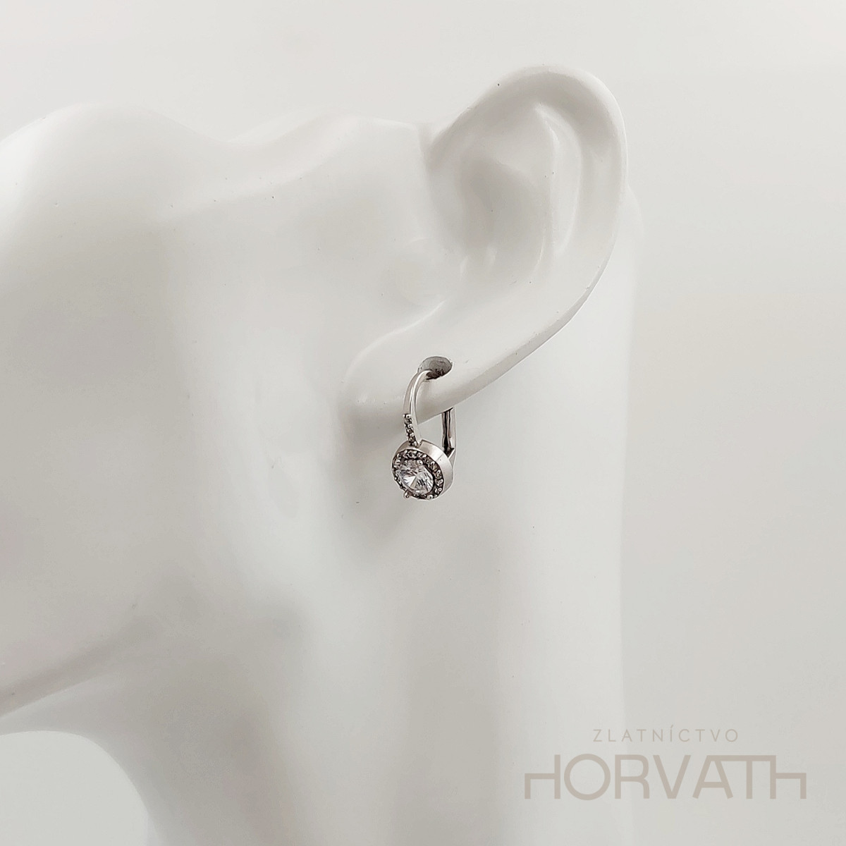 Zlaté náušnice zdobené zirkónmi sú na klasické zapínanie, vyrobené zo 14 karátového zlata 585/1000.