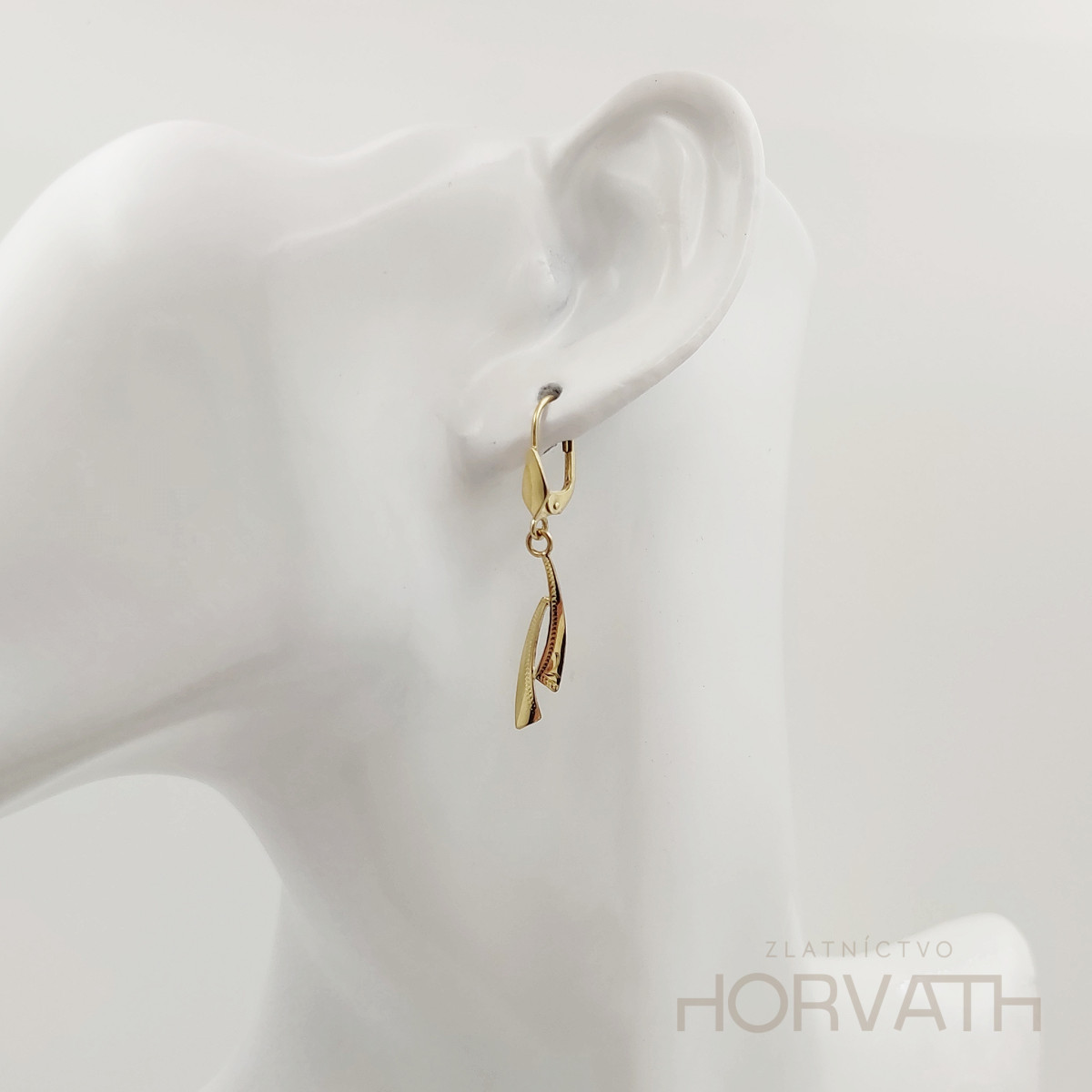 Zlaté dámske krásne visiace náušnice sú vyrobené zo 14 karátového zlata 585/1000.Náušnice sú na klasický patent prednú časť zdobí gravírovaná úprava.