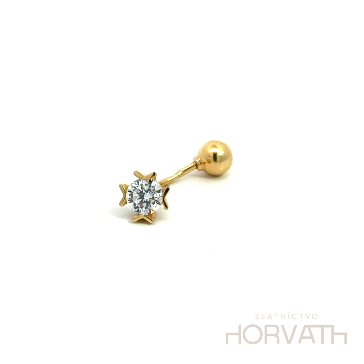 Piercing do pupku je vyrobený zo 14 karátového zlata. Ozdobou je zirkónový kamienok. Dĺžka piercingu je 20 mm. Priemer guličky je 4 mm. Priemer ozdobnej časti 6 mm.