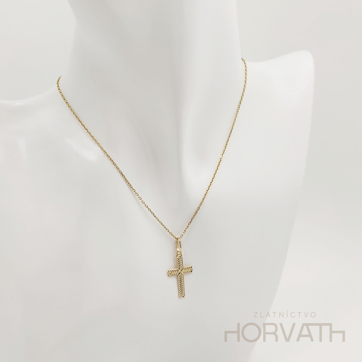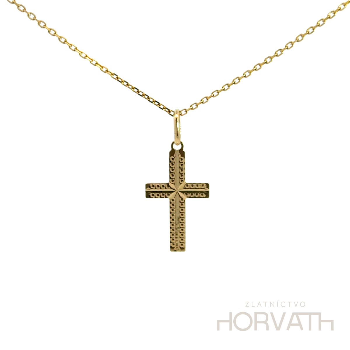 Zlatý prívesok krížik 0,41 g. Rozmer prívesku 22x12 mm.