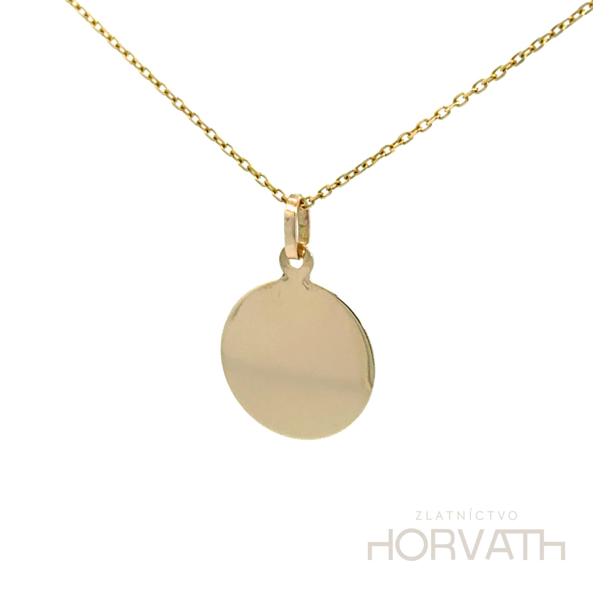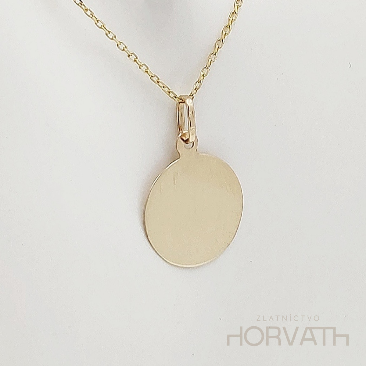 Elegantný zlatý prívesok, vhodný na gravírovanie, s lesklou povrchovou úpravou. Platnička je vyrobená zo 14 karátového zlata 585/1000.