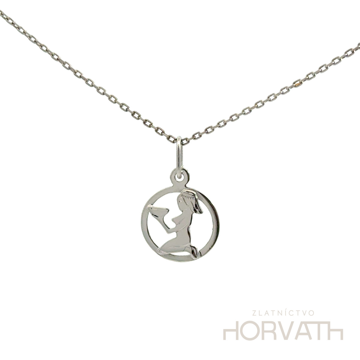 Zlatý prívesok panna. Prívesok je z bieleho zlata je vyrobený zo 14 karátového zlata 585/1000.
