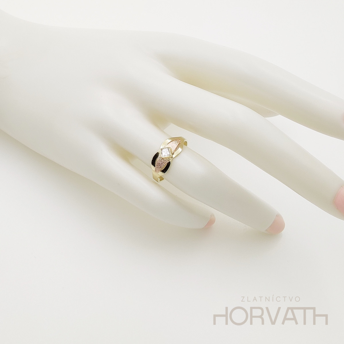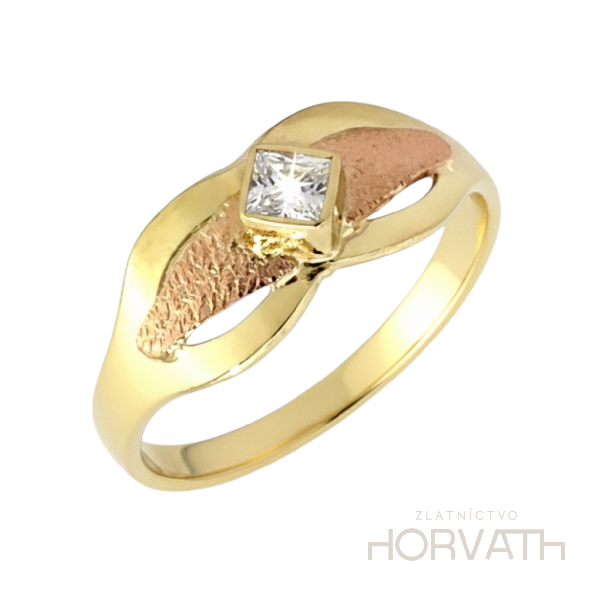 Zlatý zirkónový dámsky prsteň vyrobený zo žltého a ružového 14 karátového zlata. 585/1000.Ručná práca.
