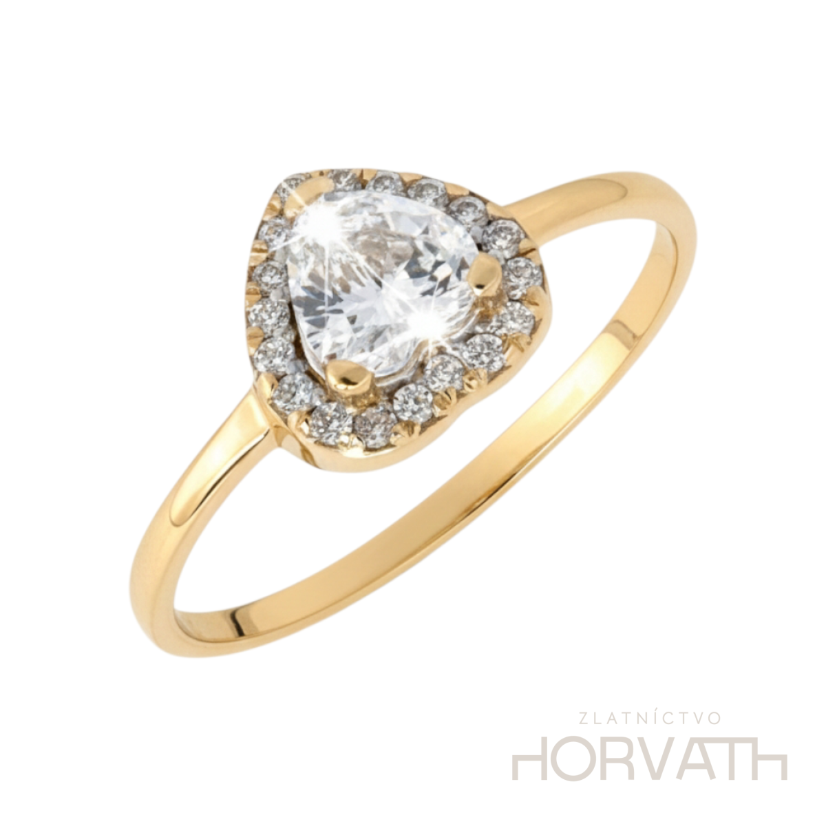 Zlatý dámsky romantický prsteň je vyrobený zo 14 karátového zlata 585/1000,zdobený zirkónom s priemerom 4mm,osadeným v tvare srdiečka.