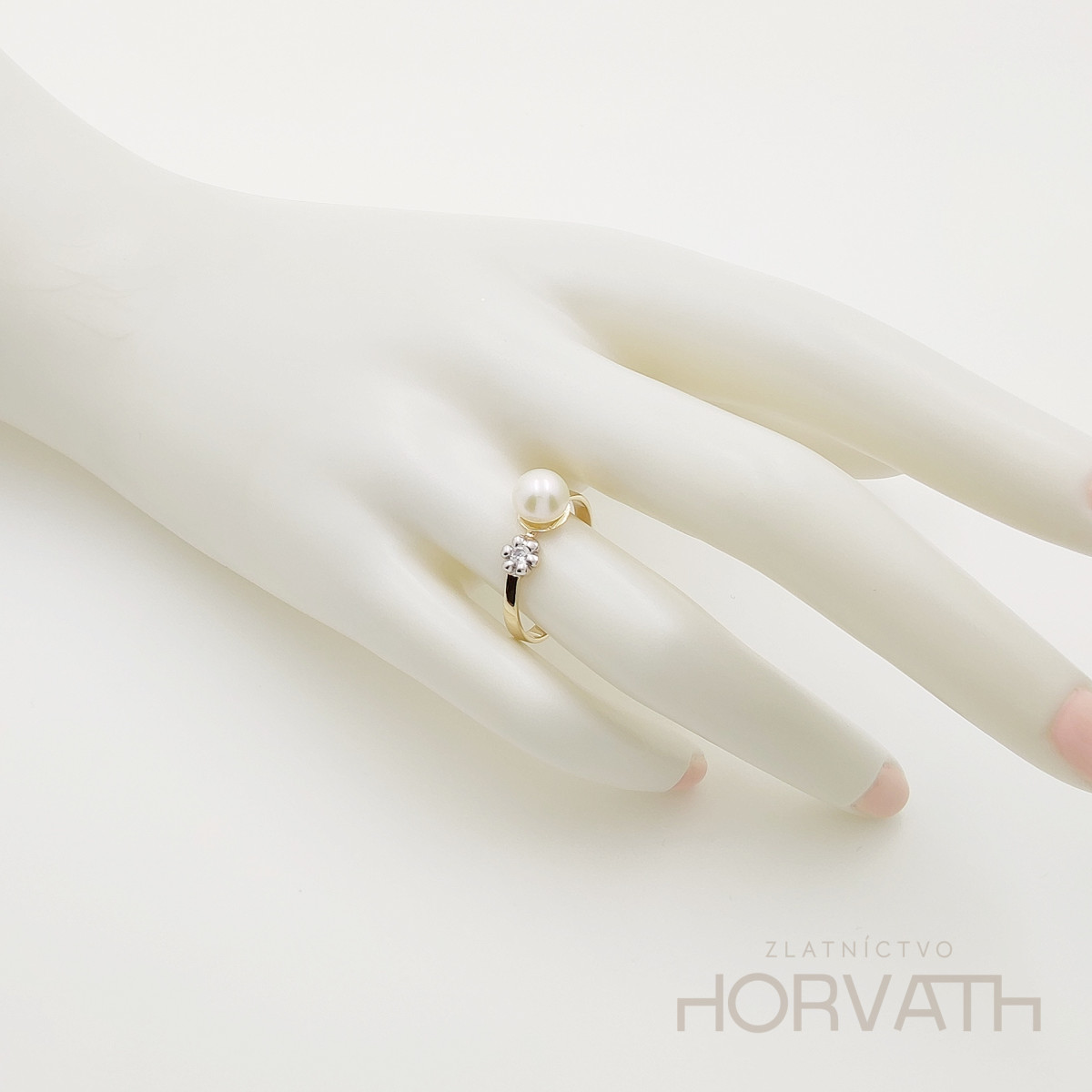 Zlatý dámsky prsteň 2,05gr. Veľkosť 55. Priemer perly je 5 mm.