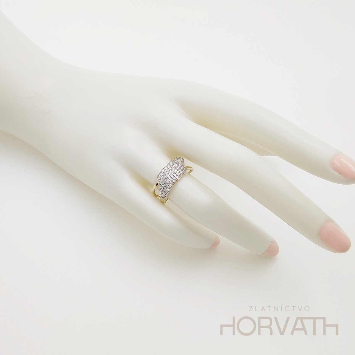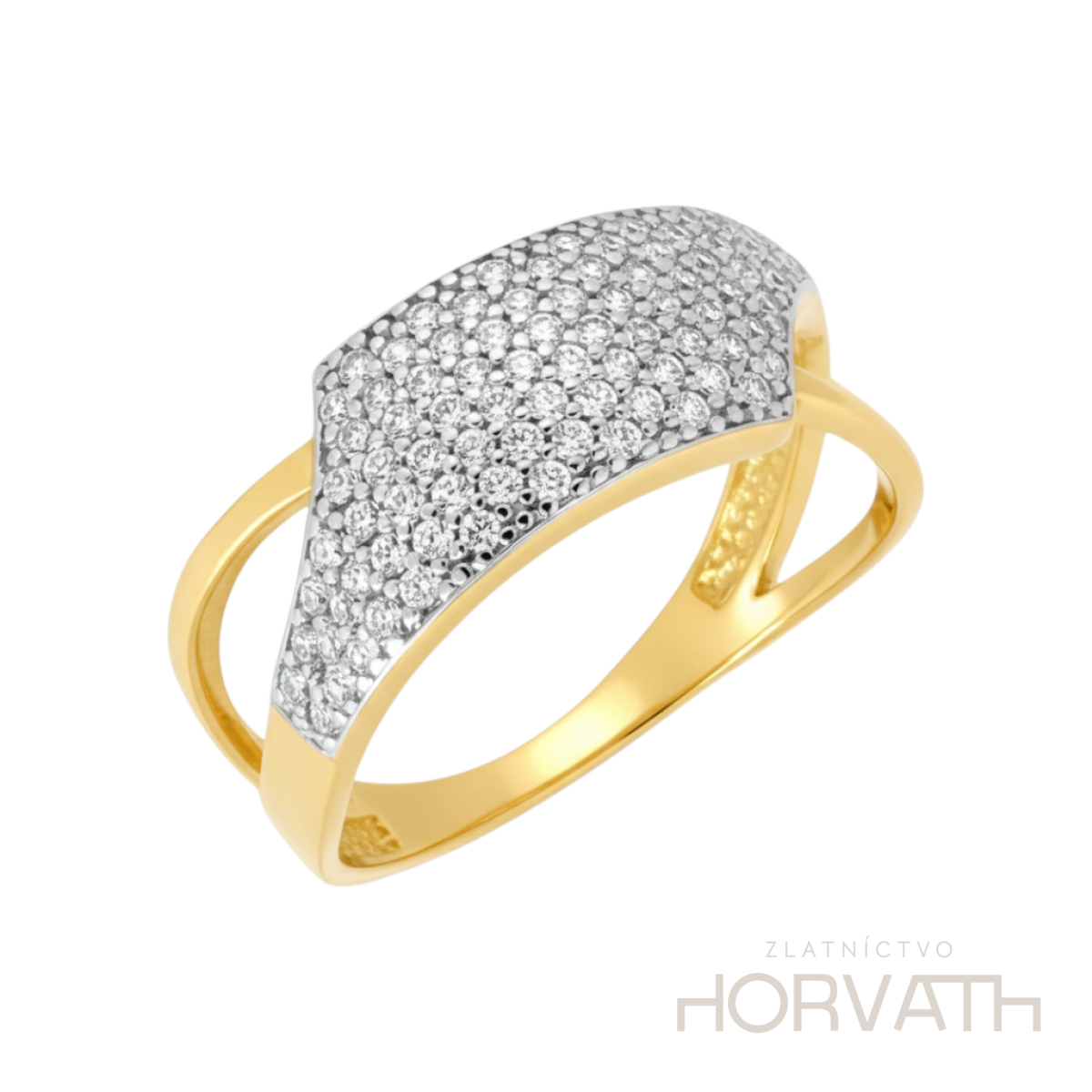 Zlatý dámsky extravagantný, zirkónový prsteň vyrobený z 14 karátového zlata. 585/1000.