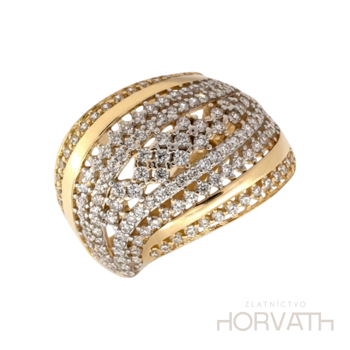 Zlatý dámsky extravagantný, zirkónový prsteň vyrobený z 14 karátového zlata. 585/1000.