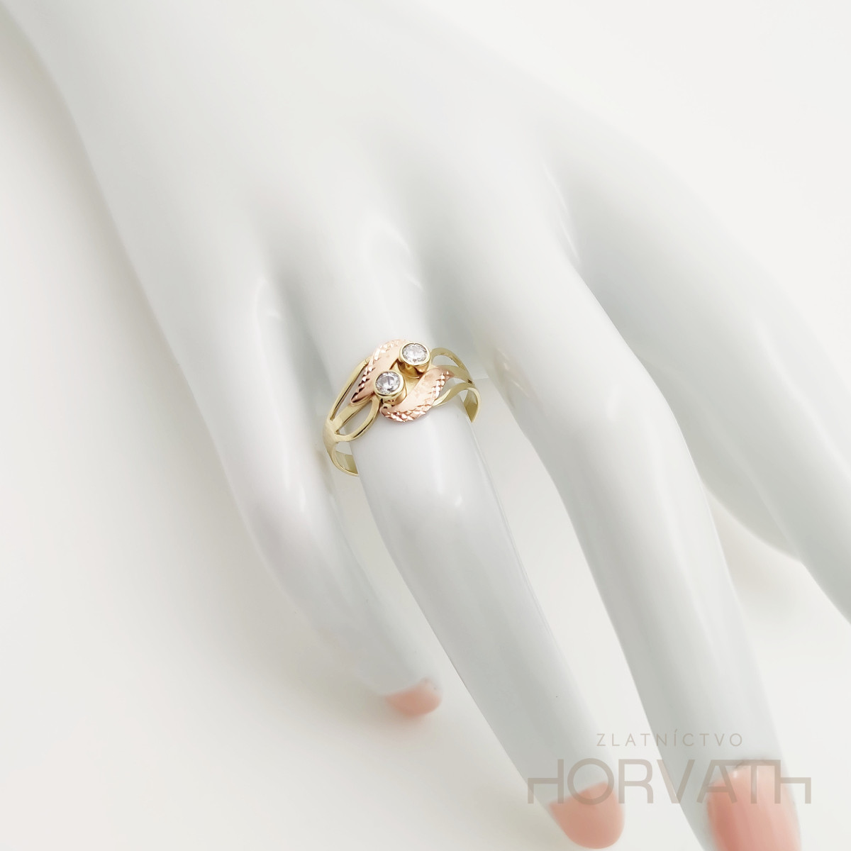 Zlatý zirkónový dámsky prsteň vyrobený zo žltého a ružového 14 karátového zlata. 585/1000.Ručná práca.