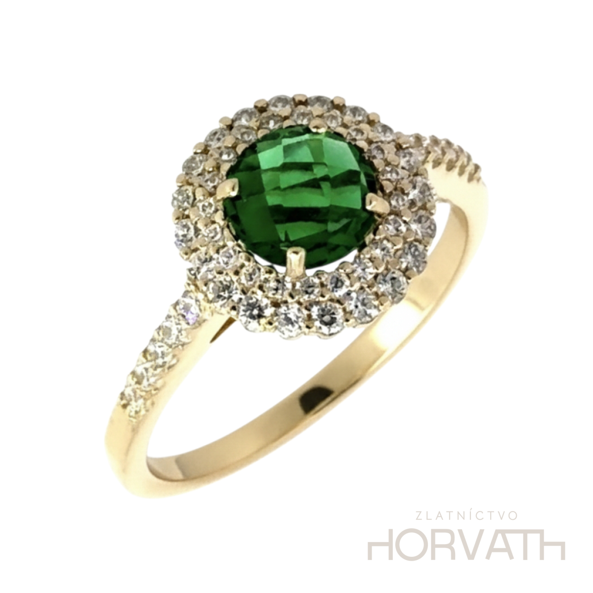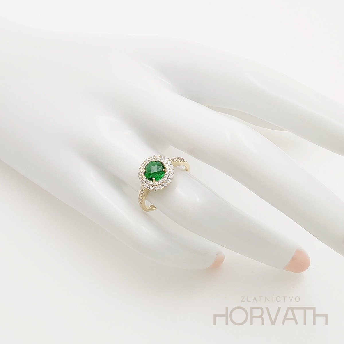 Dámsky prsteň zdobený zirkónmi je vyrobený zo 14 karátového zlata 585/1000.