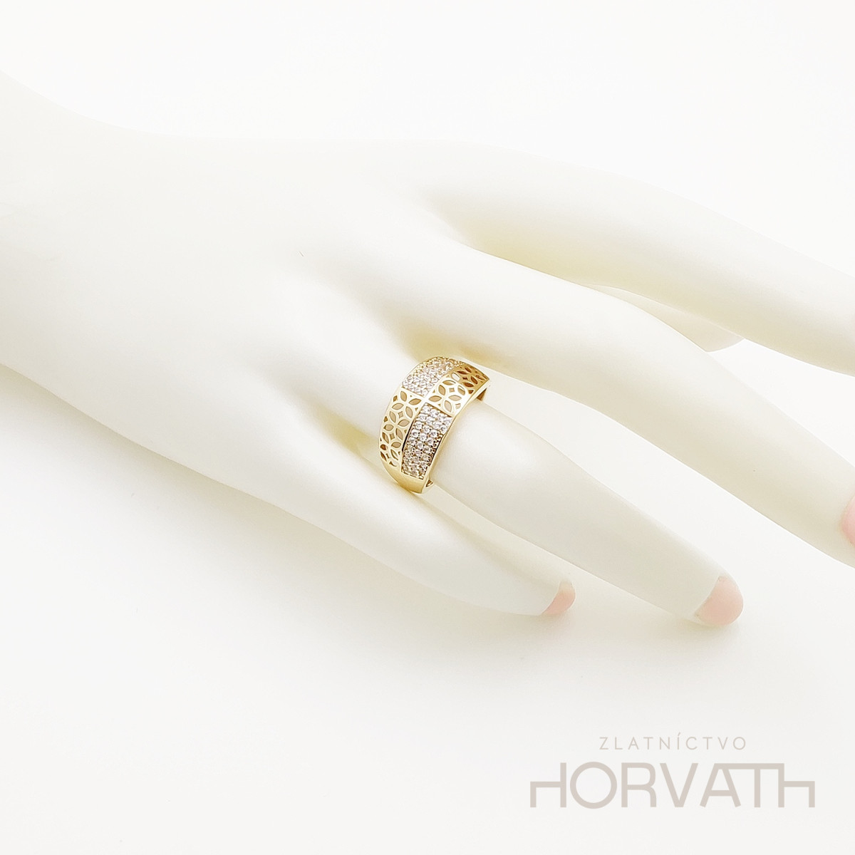 Dámsky zlatý prsteň je vyrobený zo 14 karátového zlata 585/1000.Šírka prsteňa je 10mm.