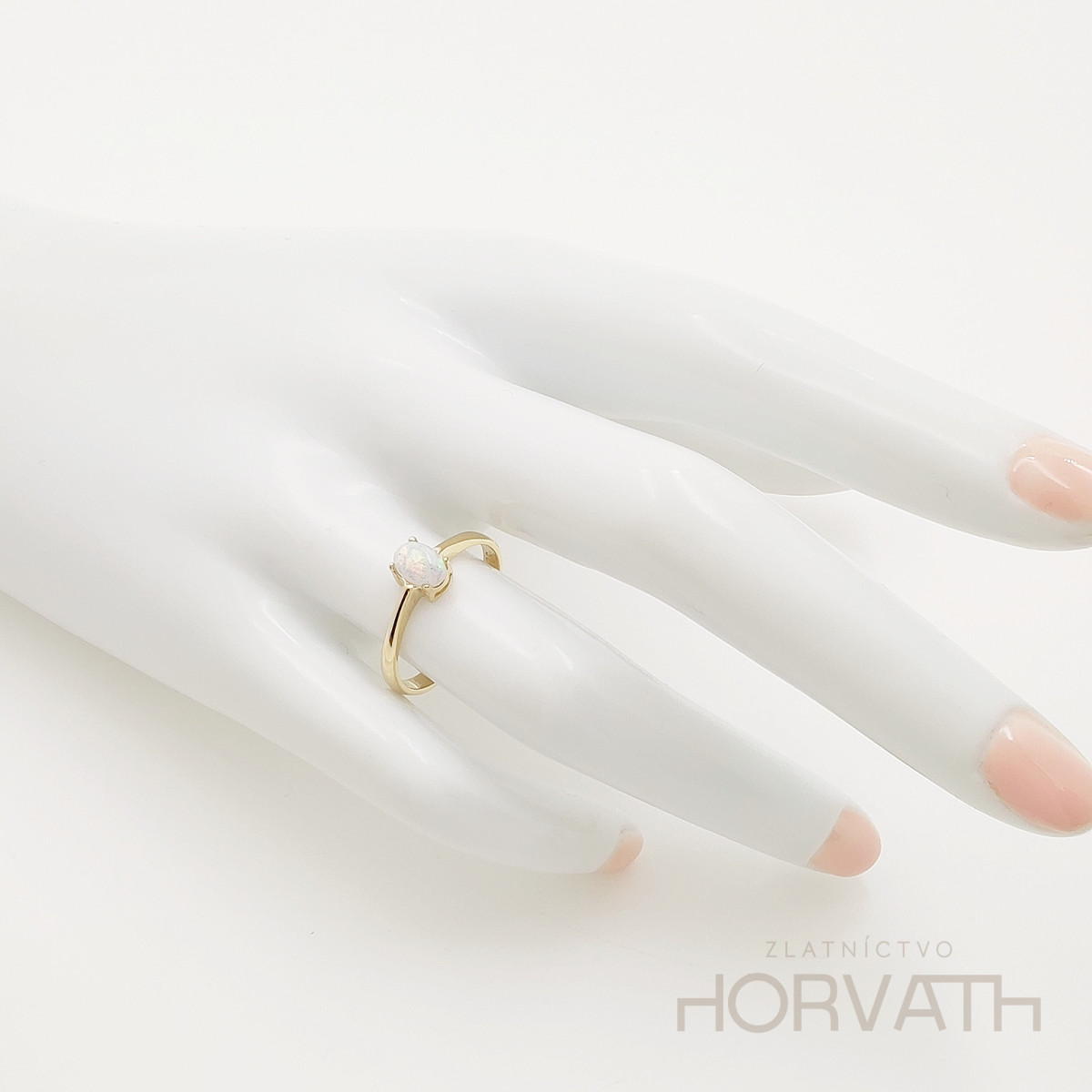 Jedinečný dámsky prsteň zdobený opálom je vyrobený zo 14 karátového zlata 585/1000.