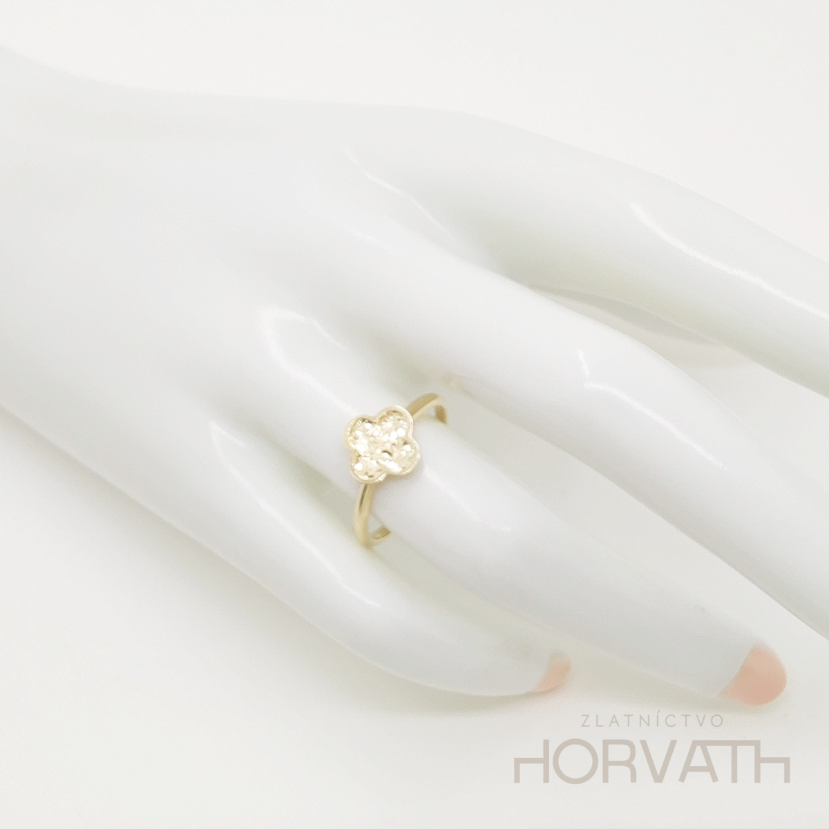 Jedinečný dámsky prsteň je vyrobený zo 14 karátového zlata 585/1000.