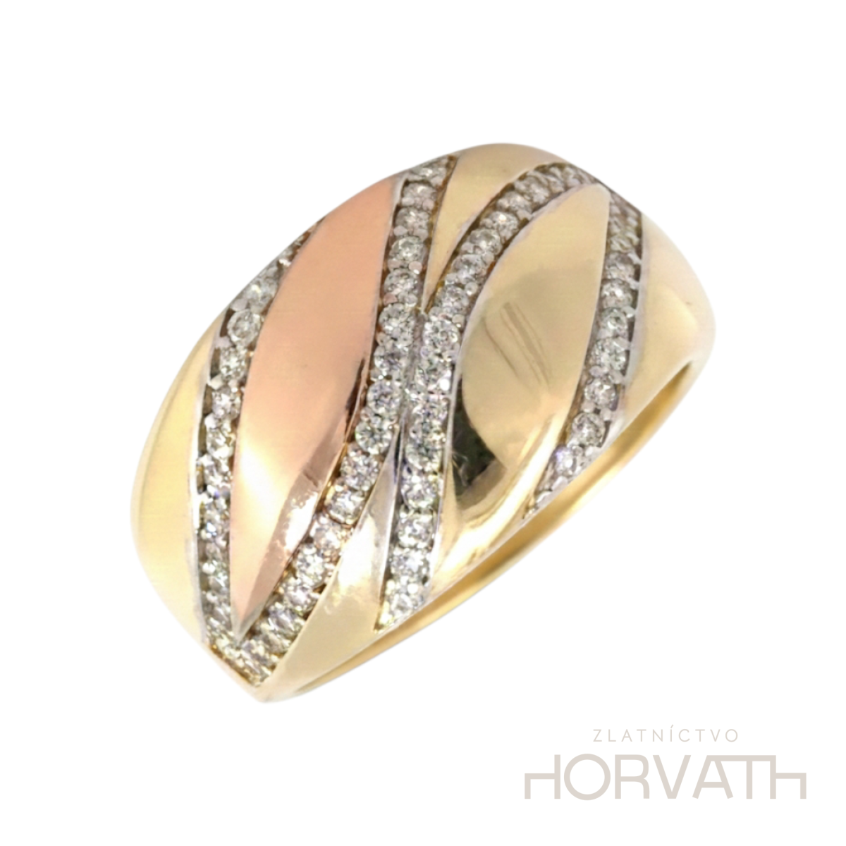 Jedinečný dámsky prsteň je vyrobený zo 14 karátového zlata 585/1000