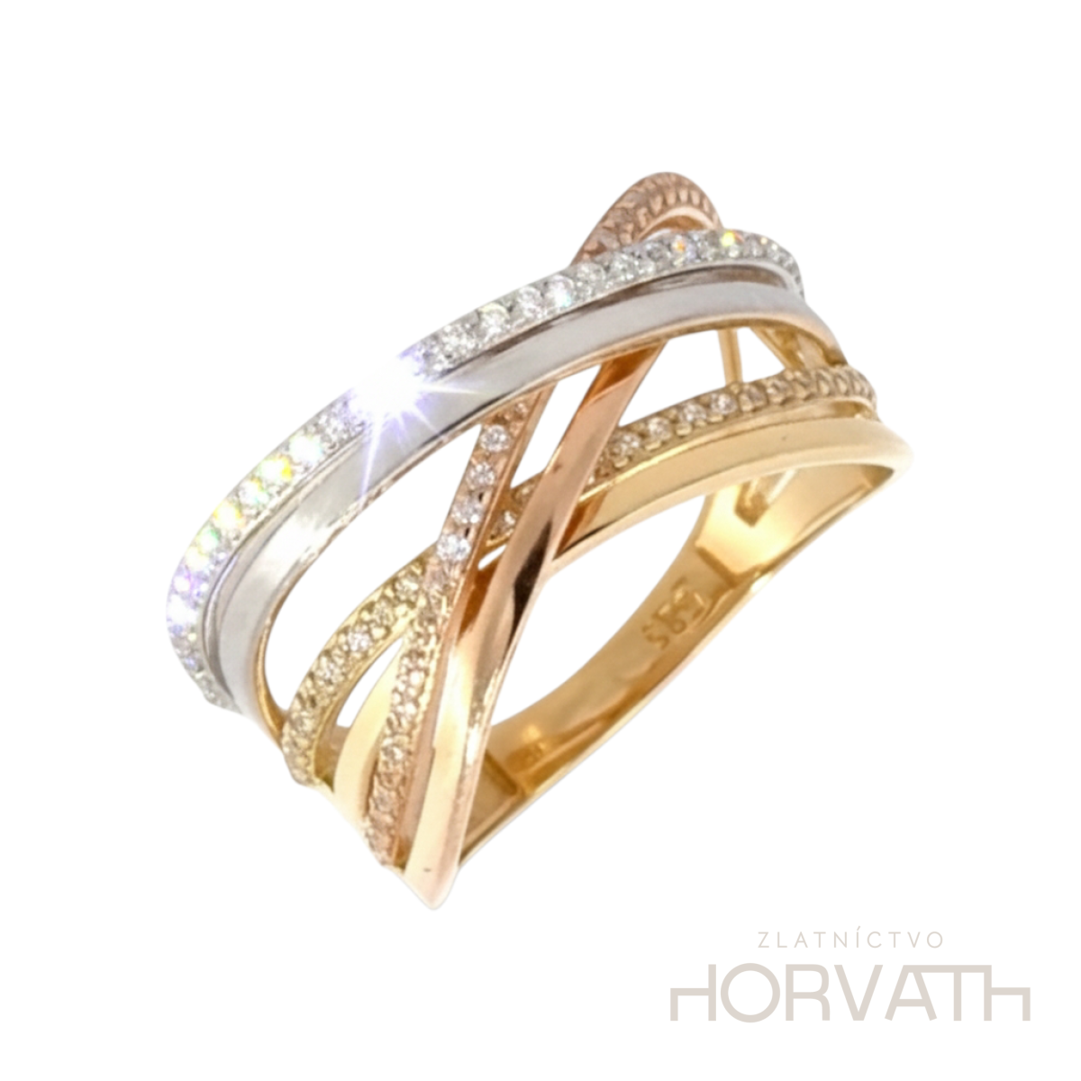 Jedinečný dámsky prsteň je vyrobený zo 14 karátového zlata 585/1000
