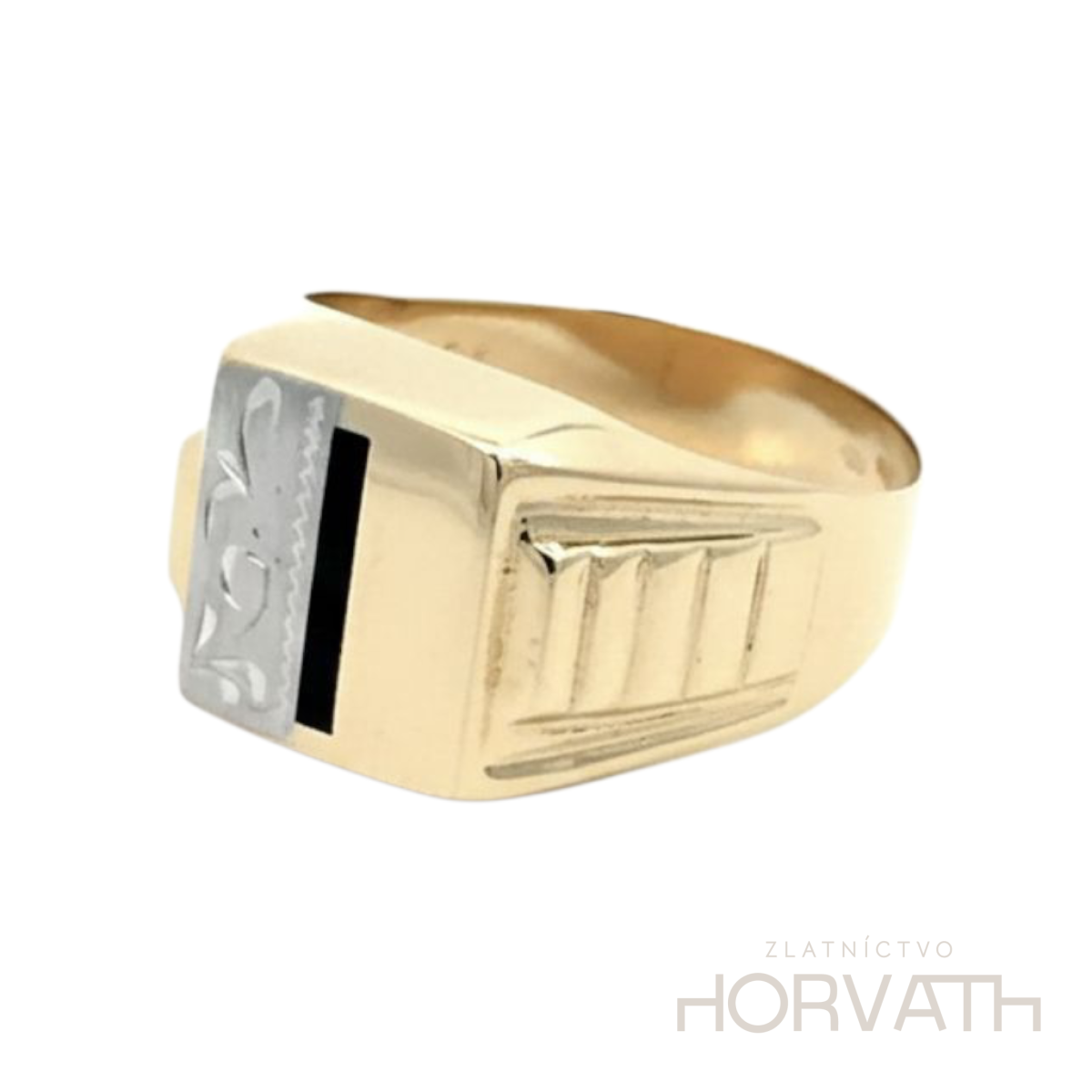 Zlatý pánsky prsteň je vyrobený zo 14 karátového zlata 585/1000. Rozmer vrchnej plochy prsteňa je 11 mm.