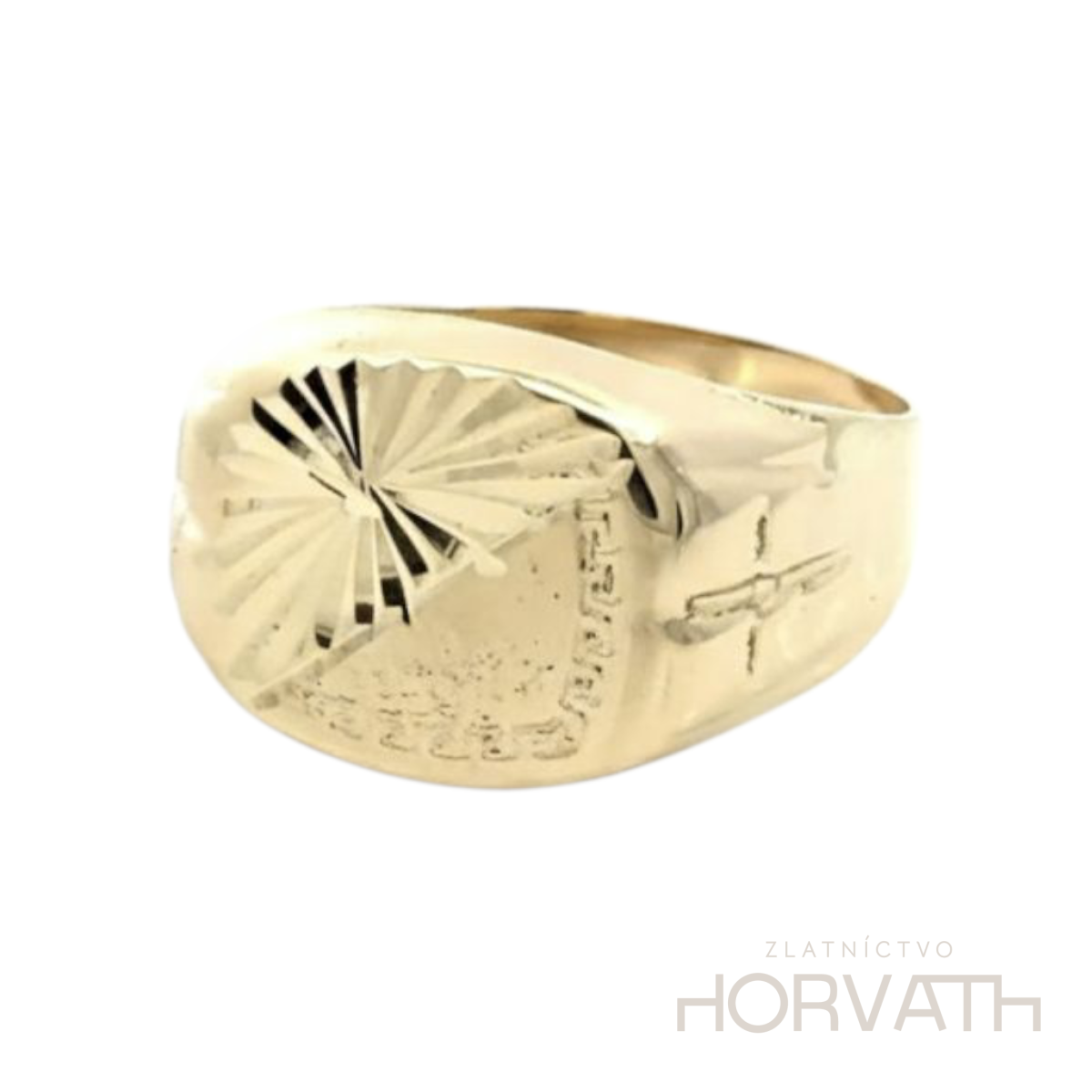 Zlatý pánsky prsteň je vyrobený zo 14 karátového zlata 585/1000. Rozmer vrchnej plochy prsteňa je 12 mm.