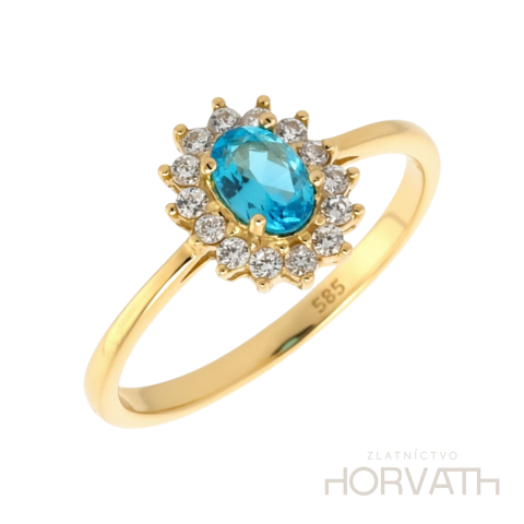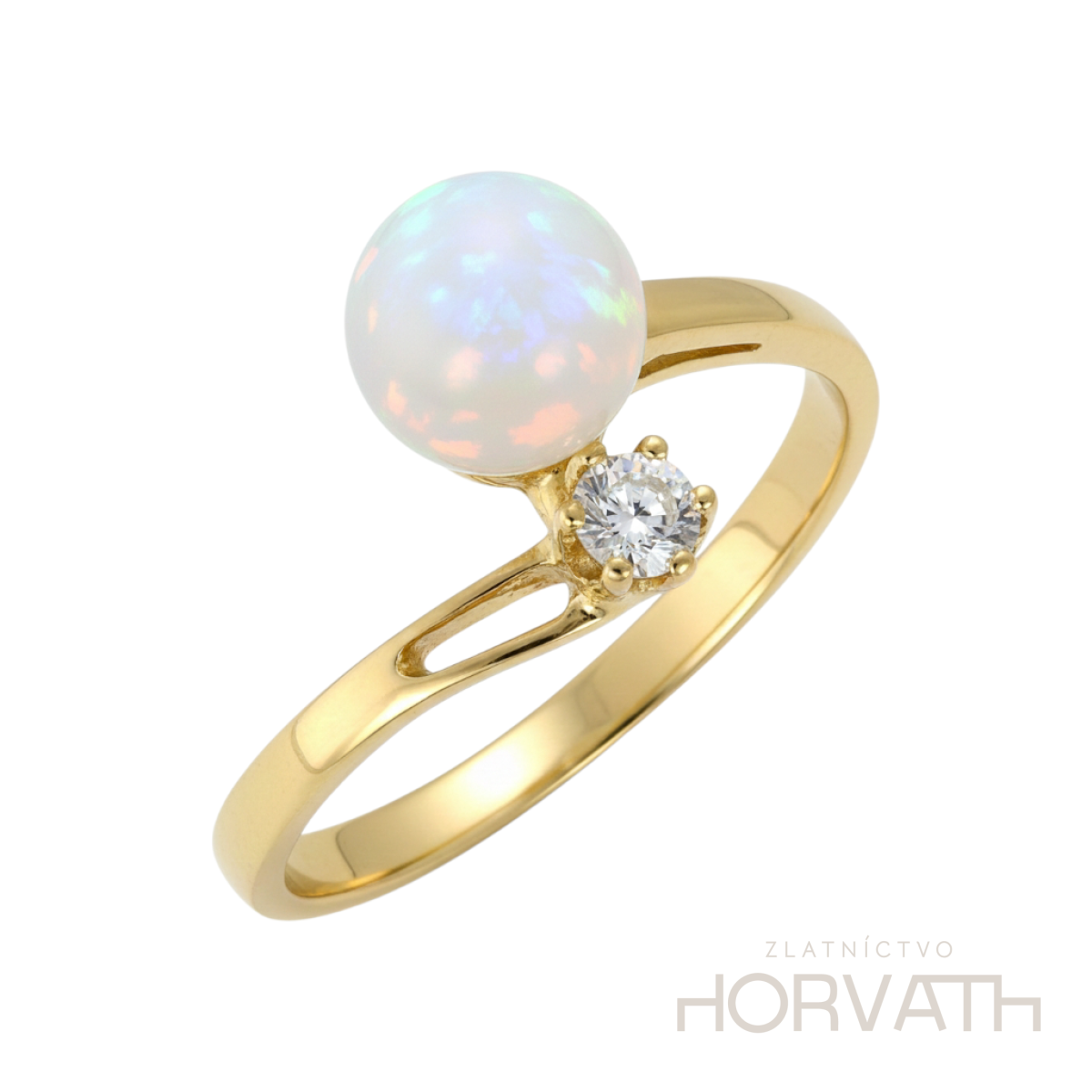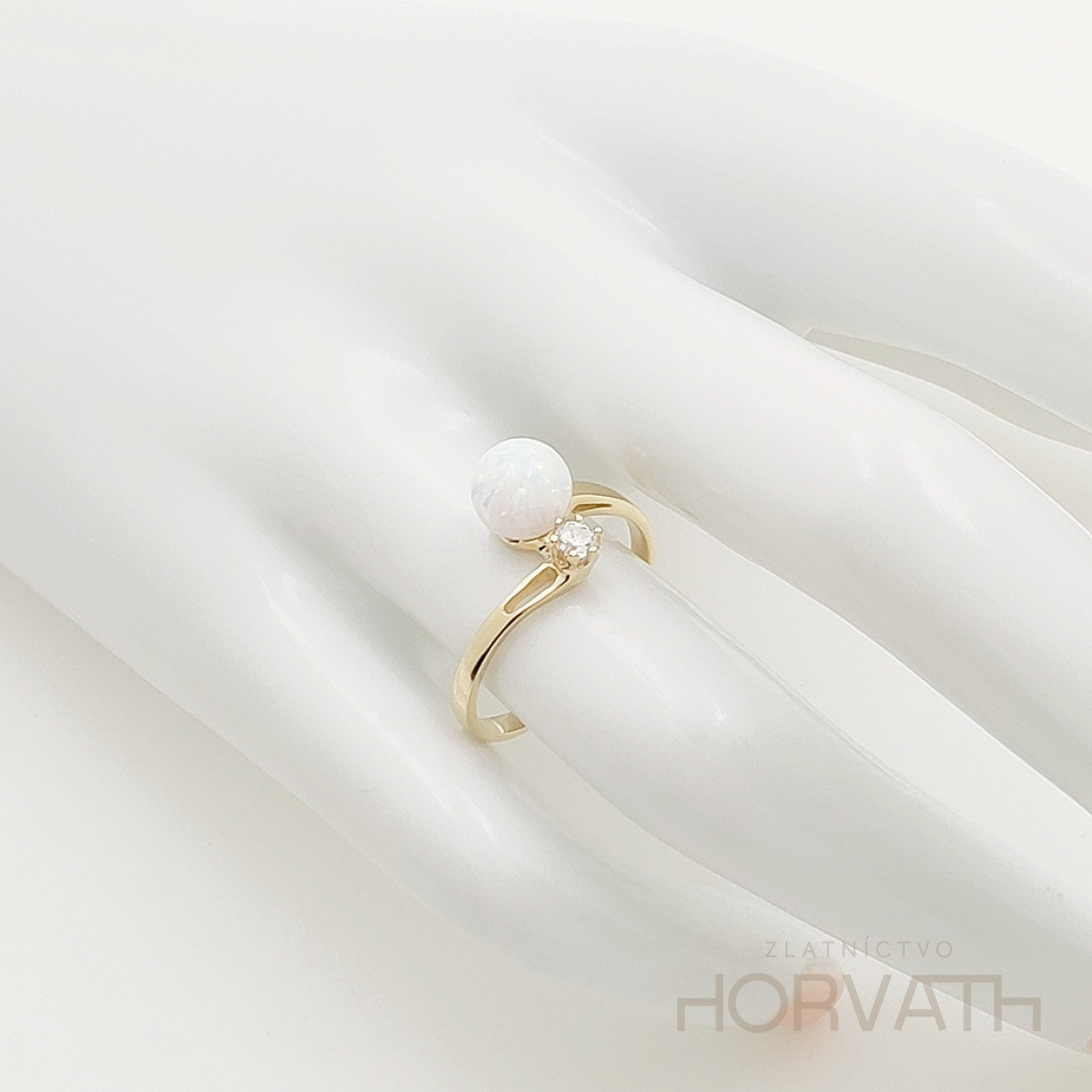 Dámsky prsteň zdobený opálom a zirkónom je vyrobený zo 14 karátového zlata 585/1000.