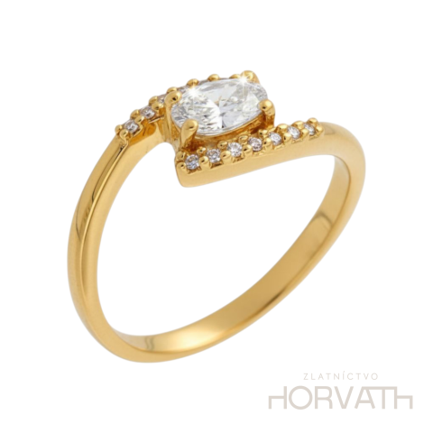 Exkluzívny zlatý prsteň zdobený zirkónmi je vyrobený zo 14 karátového zlata 585/000.