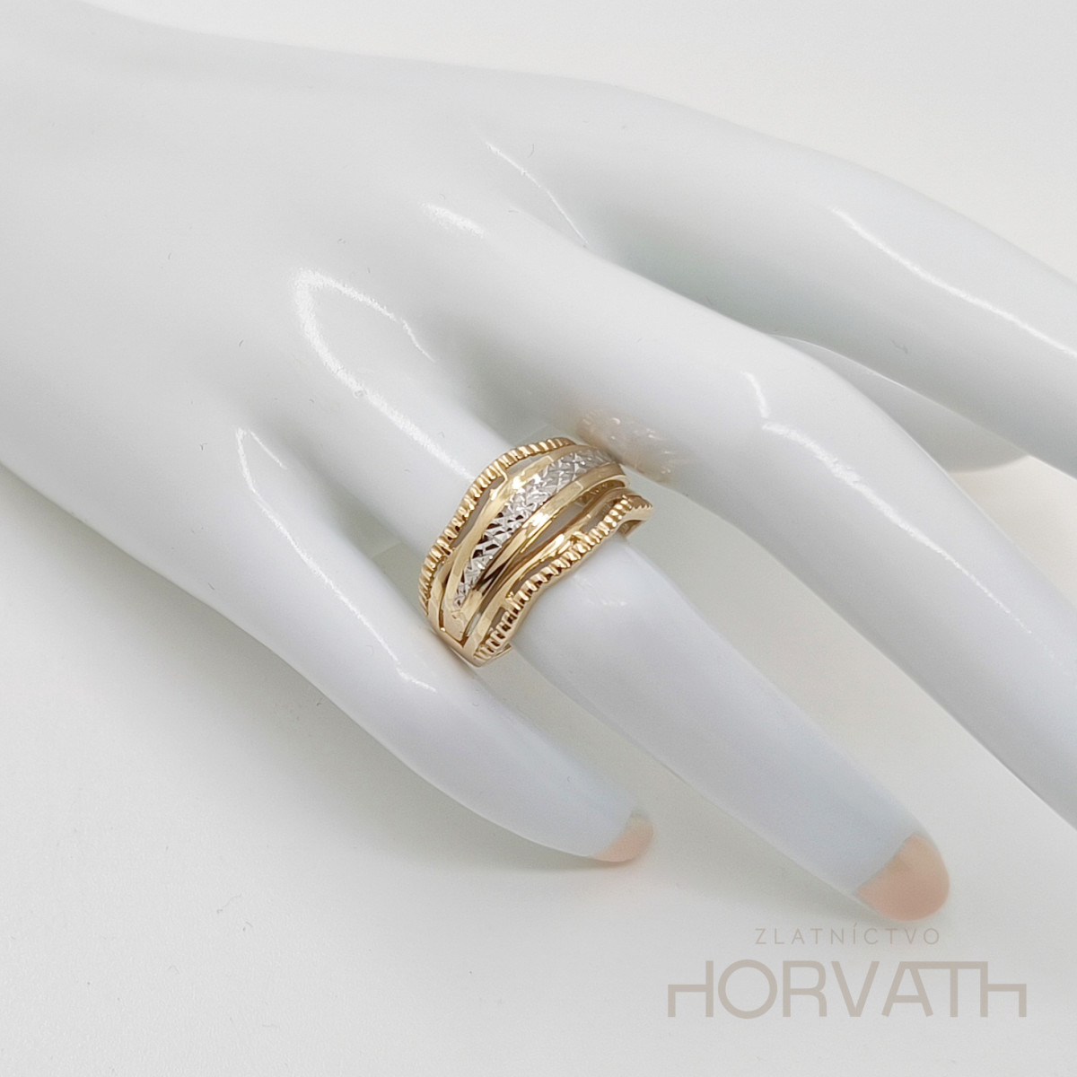 Zlatý prsteň je vyrobený zo 14 karátového zlata 585/000.