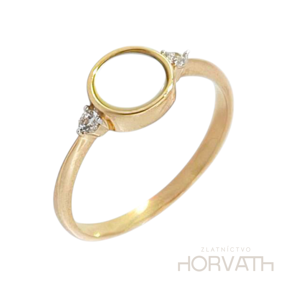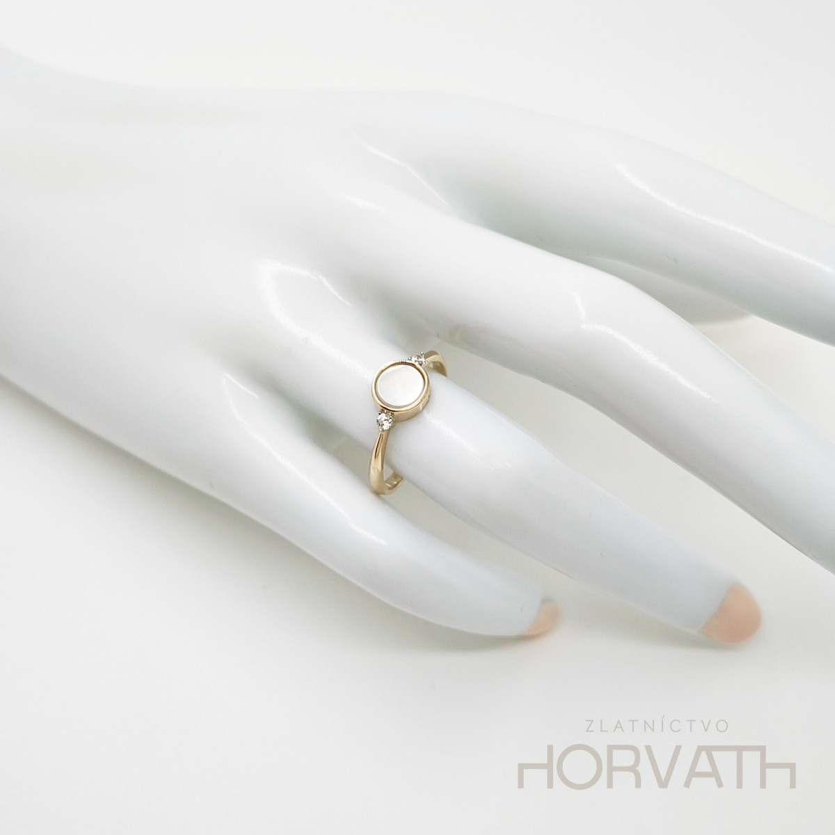 Zlatý prsteň zdobený perleťou, vyrobený zo 14 karátového zlata 585/1000.