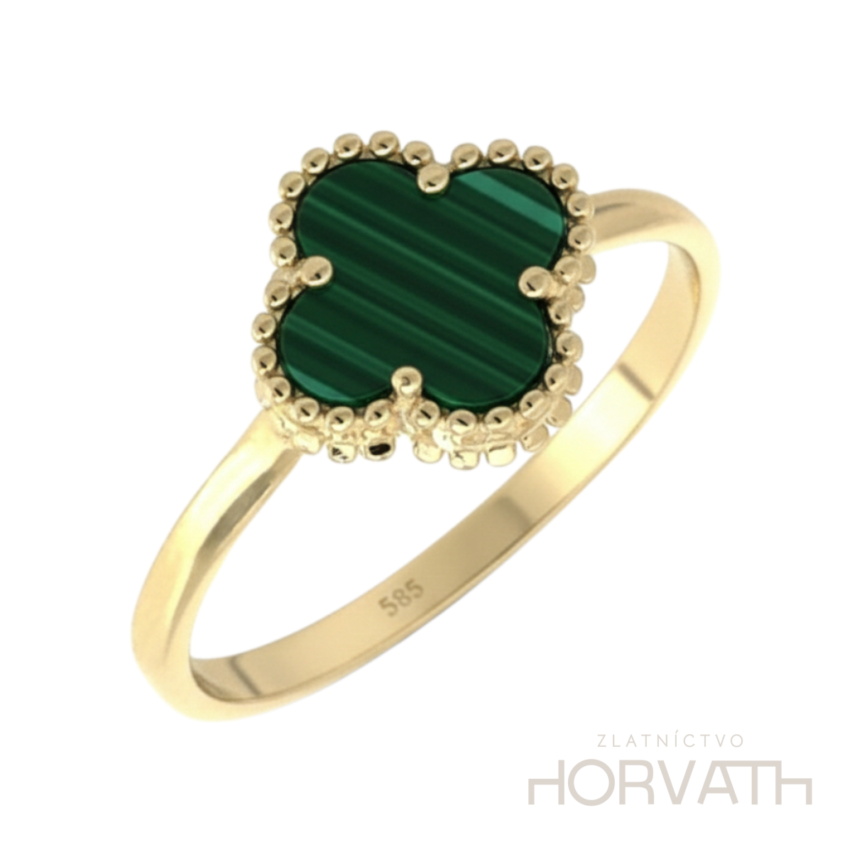 Kameň malachit Materiál Žlté zlato Farba kameňa Tmavo-zelená Veľkosť 56 Kód produktu dp-0396 Cena: 354,00 €