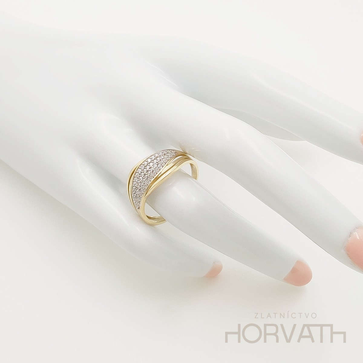 Exkluzívny, zlatý, dámsky prsteň ktorý krásne ozdobí ruku každej ženy. Je vyrobený zo 14 karátového zlata 585/1000.