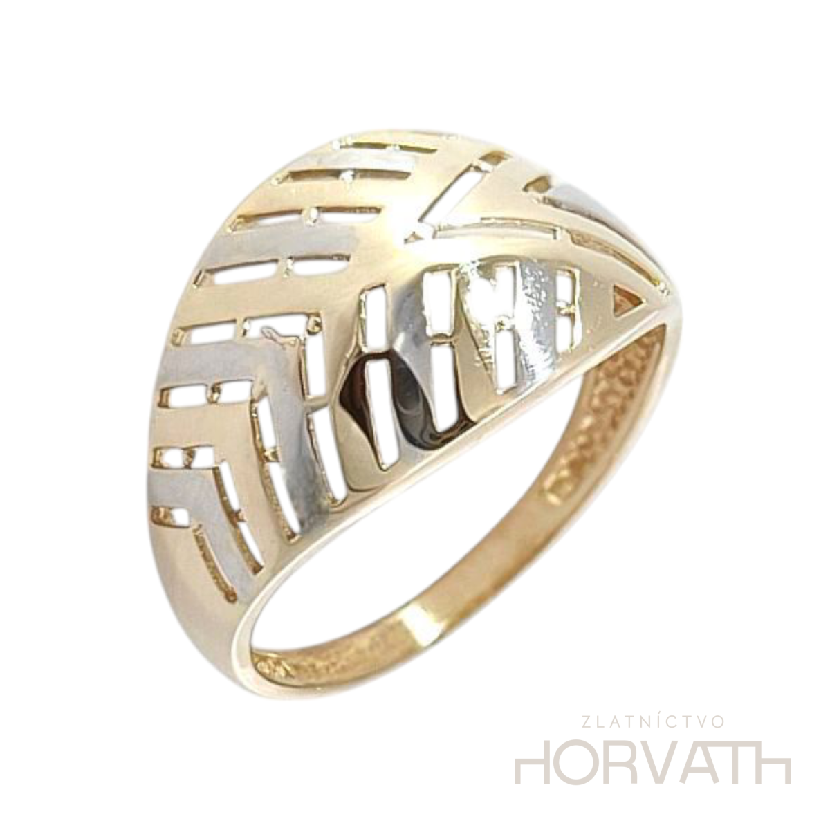 Zlatý dámsky prsteń je vyrobený zo 14 karátového zlata 585/1000. Šírka prsteňa 1,3 cm.
