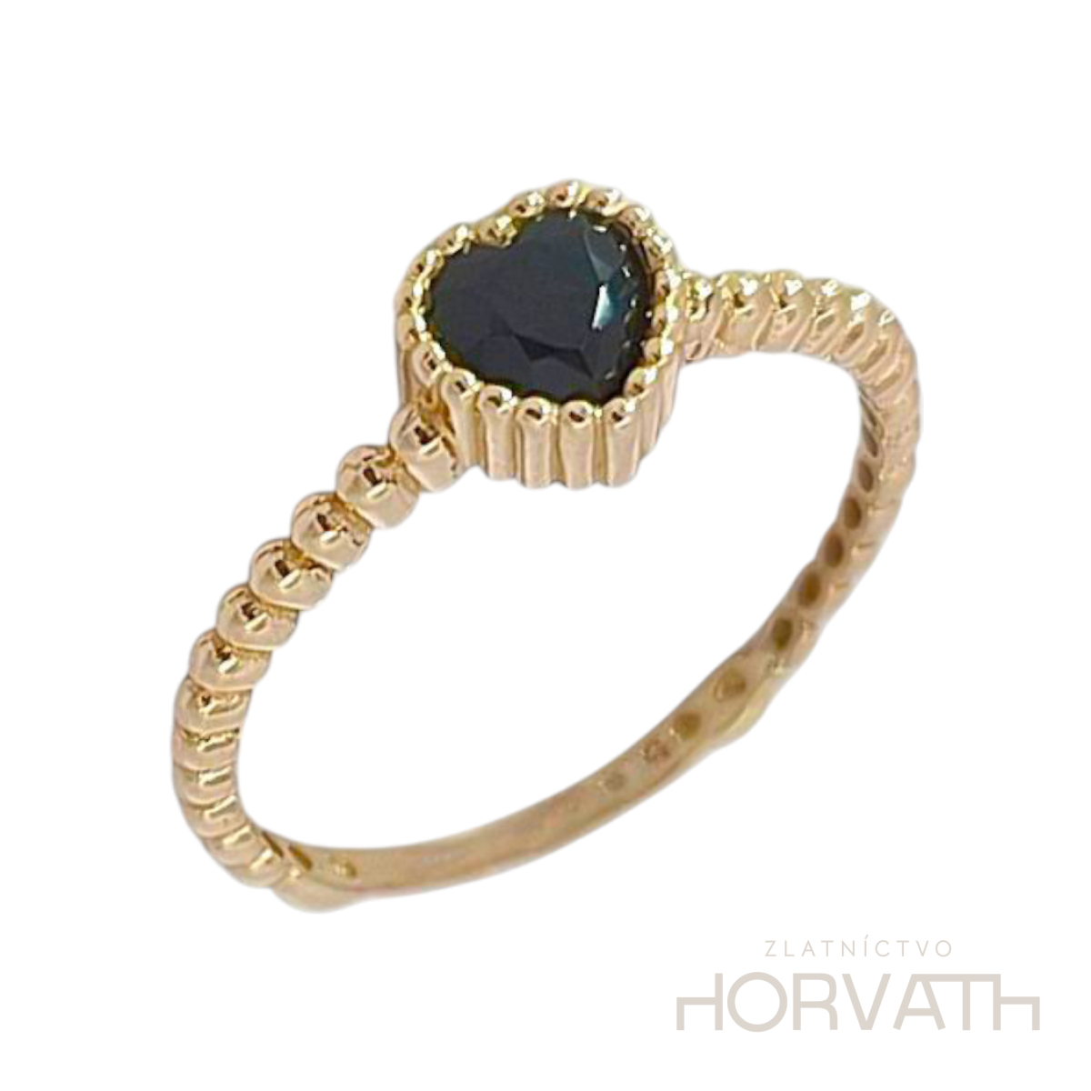Dámsky prsteň, zdobený zirkónom v tvare srdca je vyrobený zo 14 karátového zlata 585/1000.