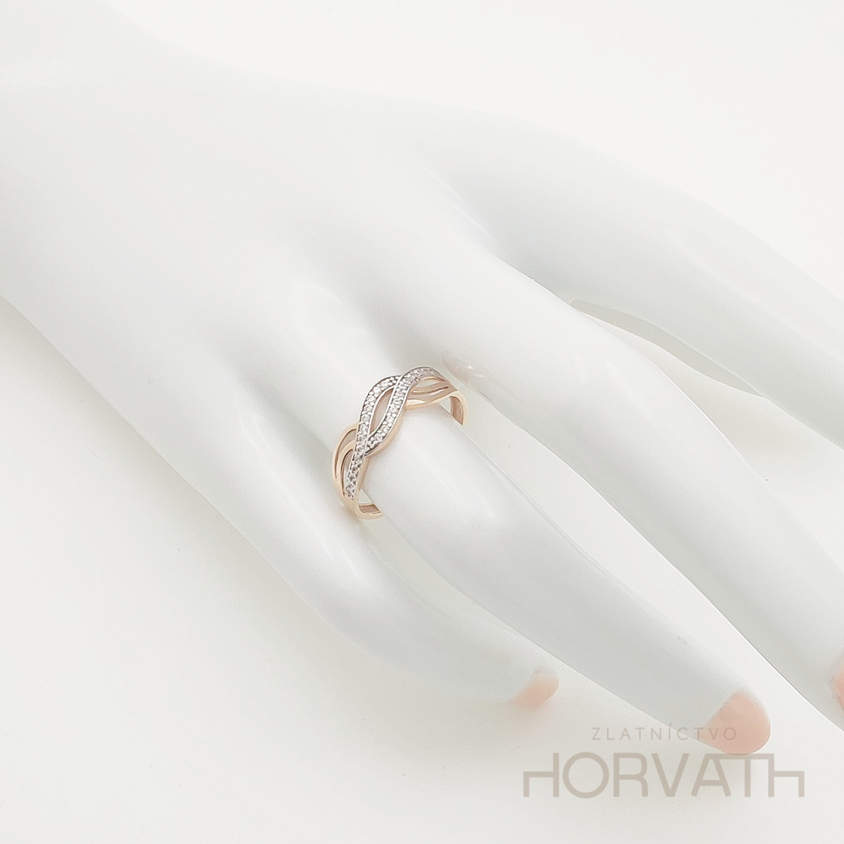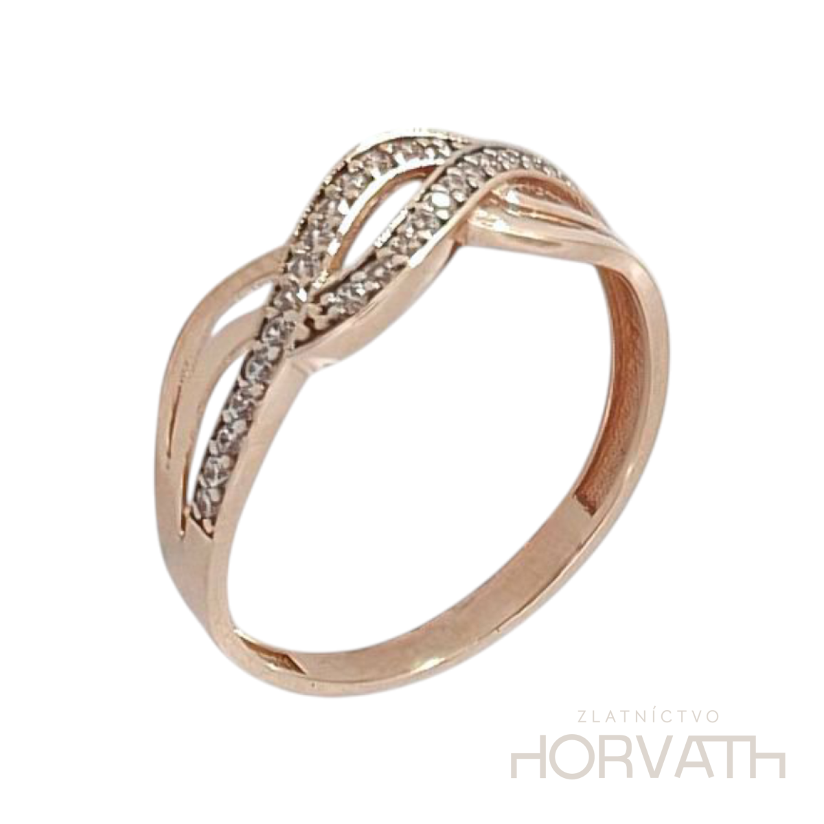Dámsky prsteň zdobený zirkónmi je vyrobený zo 14 karátového zlata 585/1000.