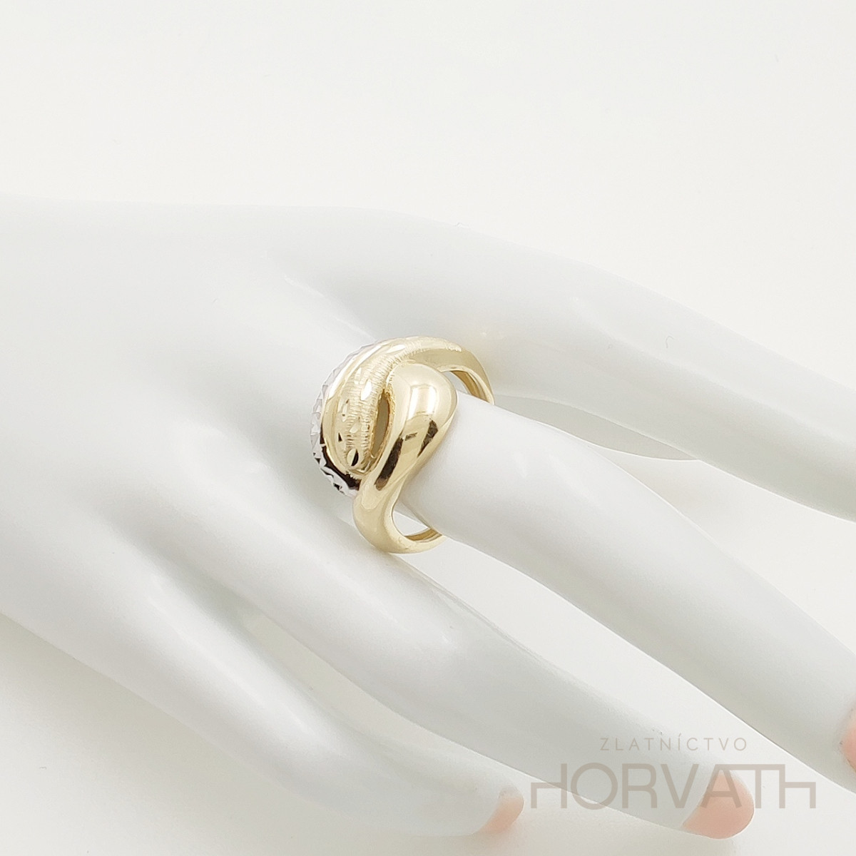 Jedinečný dámsky prsteň zdobený gravírovaním je vyrobený zo 14 karátového zlata 585/1000.