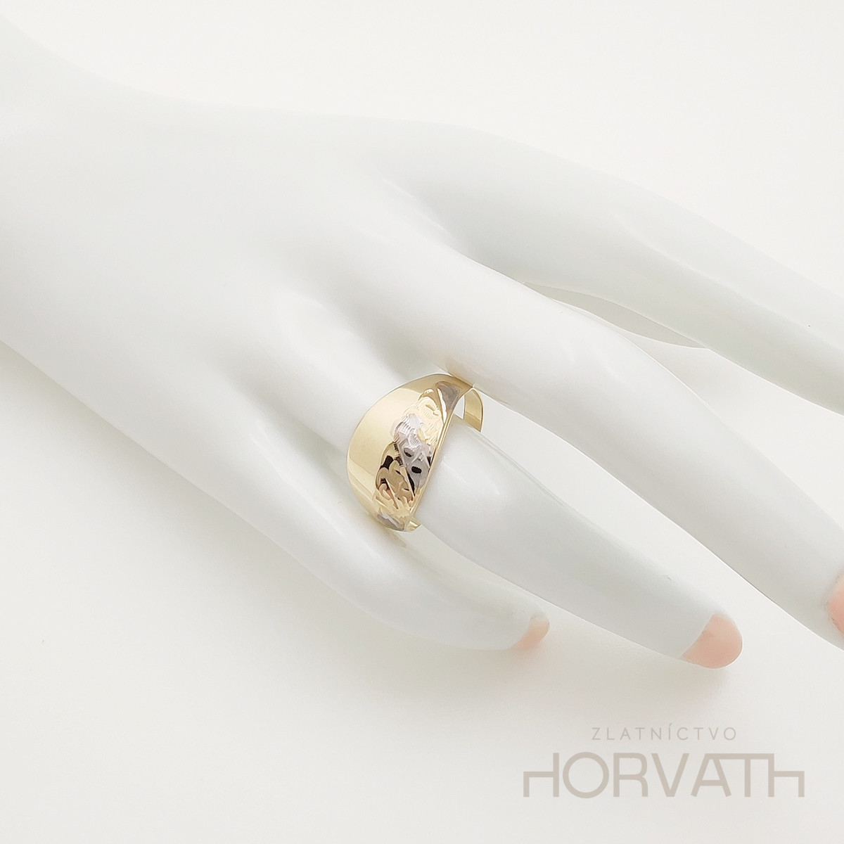 Jedinečný dámsky prsteň je vyrobený zo 14 karátového zlata 585/1000.